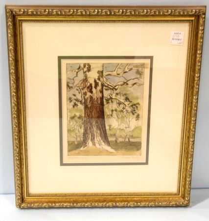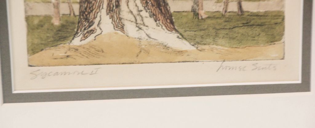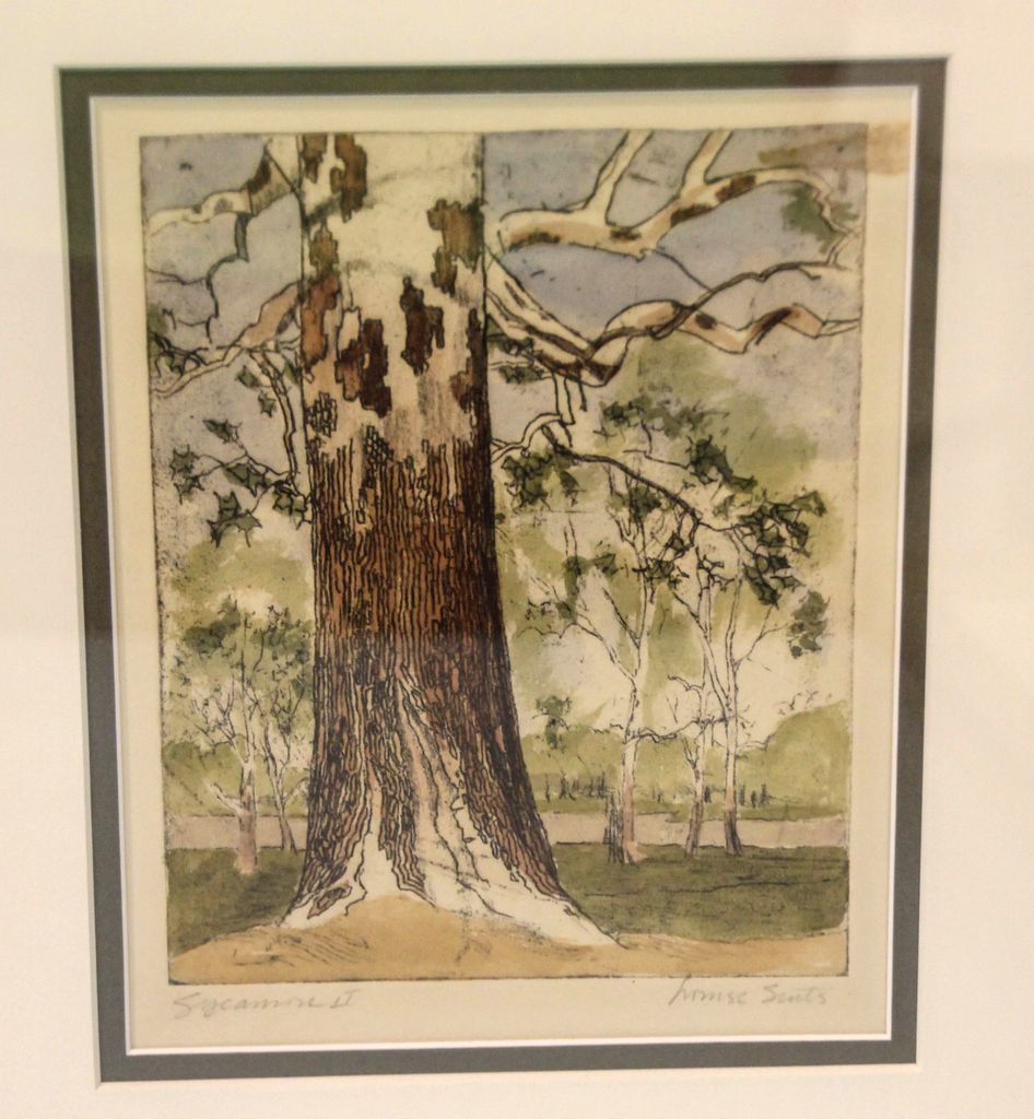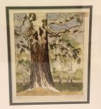 Hand colored engraving entitled "Sycamore II" by artist Louise S_____ Hand colored engraving entitled "Sycamore II" by artist Louise S_____