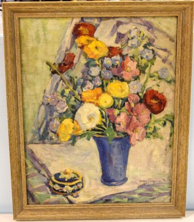 Beautiful oil on corrugated boardof flowers signed Kathryn Cherry. Kathryn Bard Cherry (1860-1931 Missouri artist); 18" w., 22 1/2" h Beautiful oil on corrugated boardof flowers signed Kathryn Cherry. Kathryn Bard Cherry (1860-1931 Missouri artist); 18" w., 22 1/2" h