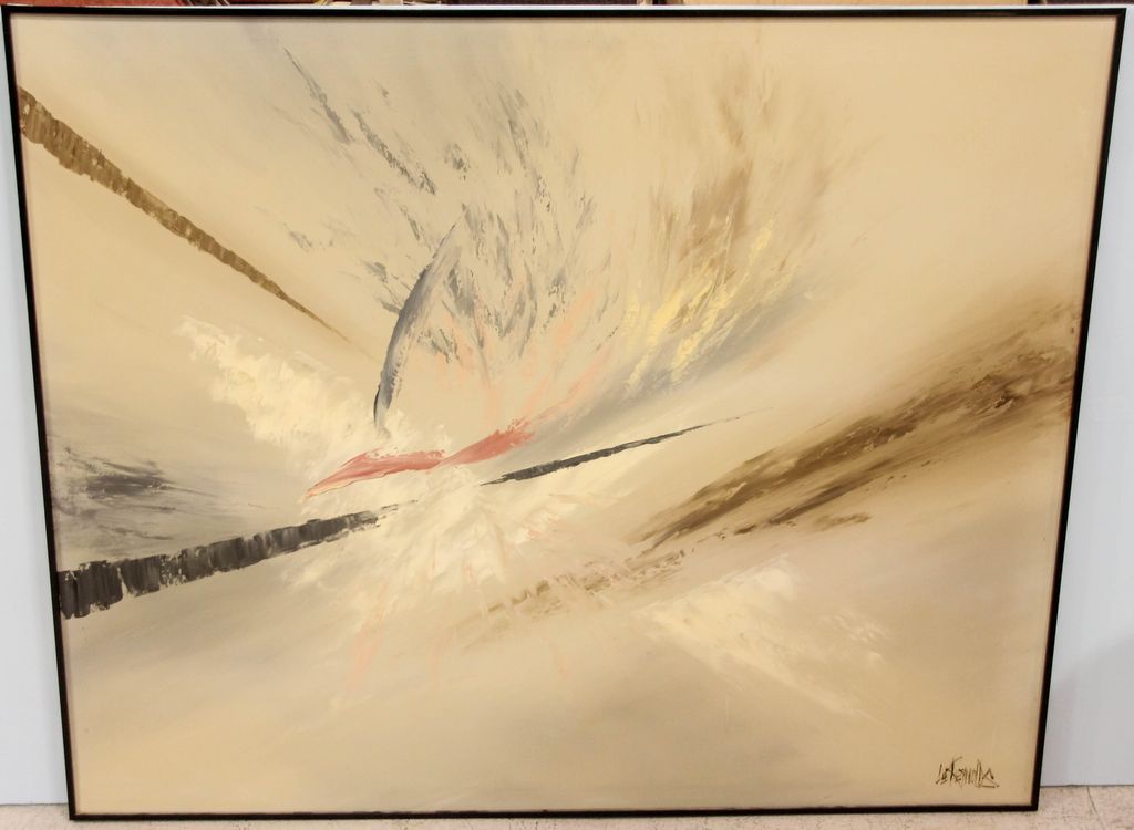 Large abstract painting; 60" w., 48 1/2" h. Large abstract painting; 60" w., 48 1/2" h.