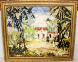 Large oil on canvas signed Trang.; 69" w., 58" h. Large oil on canvas signed Trang.; 69" w., 58" h.