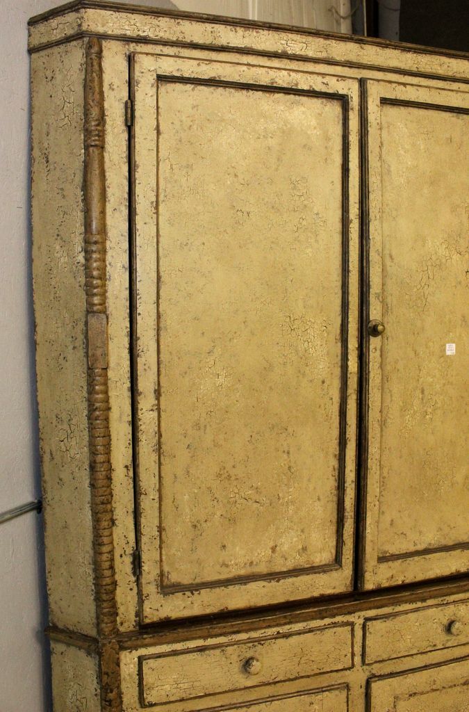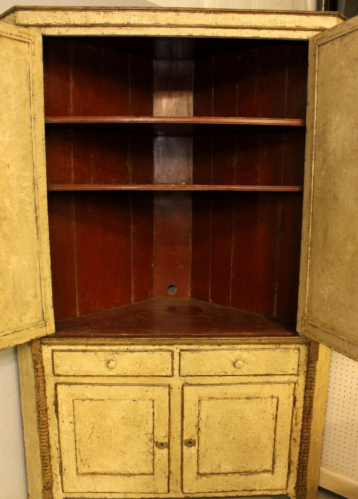 Early painted corner cabinet with two interior shelves, two drawers over two doors and original paint.; 54" w., 25" d., 84" h. Early painted corner cabinet with two interior shelves, two drawers over two doors and original paint.; 54" w., 25" d., 84" h.