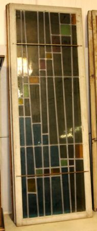 Large stained glass window in frame.; 42" w., 9' 11" h. Large stained glass window in frame.; 42" w., 9' 11" h.