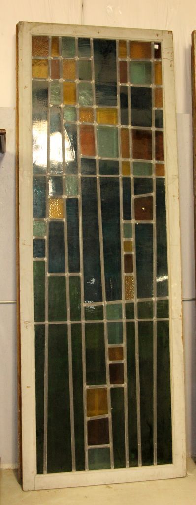 Large stained glass window in frame.; 42" w., 9' 11" h. Large stained glass window in frame.; 42" w., 9' 11" h.