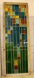 Large stained glass window in frame.; 42" w., 9' 11" h. Large stained glass window in frame.; 42" w., 9' 11" h.