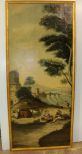 French courtship scene surrounded by animals and mountainous landscaping, C. 1770; 35 1/2" w., 81" h. French courtship scene surrounded by animals and mountainous landscaping, C. 1770; 35 1/2" w., 81" h.