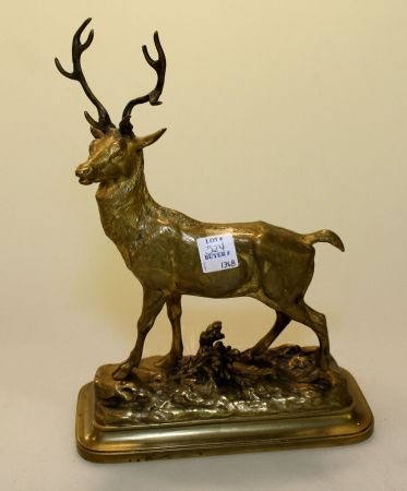 Late 19th century gilt bronze stag.; 8 1/2" w., 12" h. Late 19th century gilt bronze stag.; 8 1/2" w., 12" h.
