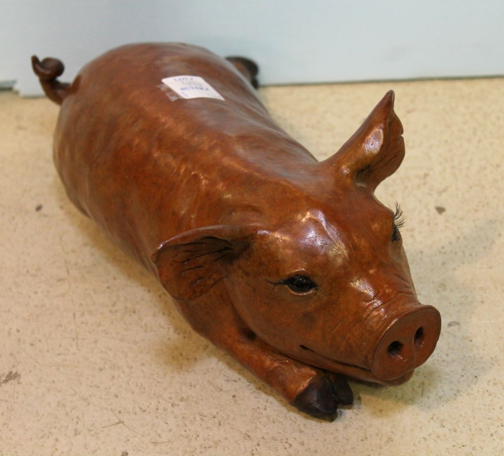 "Lyle" reclining bronze pig dated 2000, signed Michael Henington, 1/75.; 13" w., 4 1/2" h. "Lyle" reclining bronze pig dated 2000, signed Michael Henington, 1/75.; 13" w., 4 1/2" h.