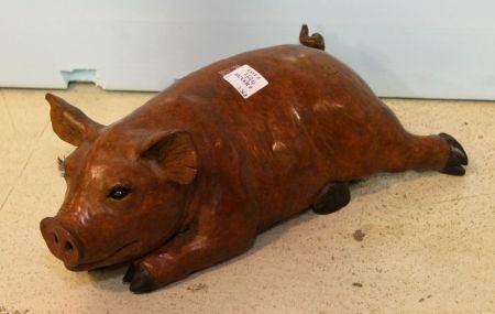 474 Reclining Bronze Pig by Michael Henington