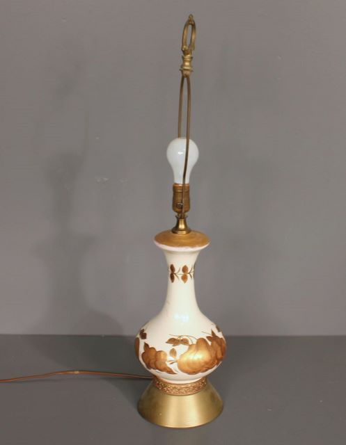 Porcelain Parlor Lamp with Gold Fruit Decoration; 31" (including harp) Porcelain Parlor Lamp with Gold Fruit Decoration; 31" (including harp)