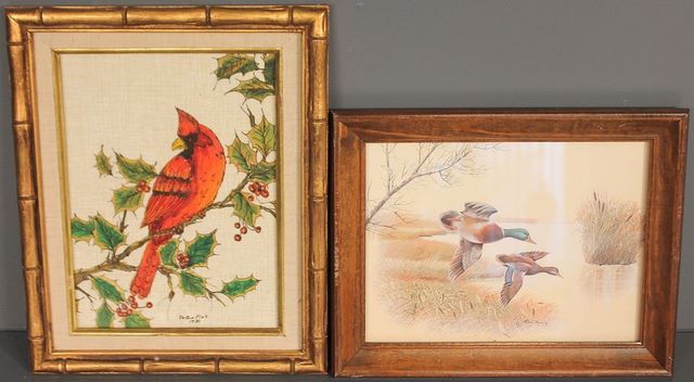 Two Prints, one of flying ducks signed Manning 14" w., 11" h., one of red bird and holly signed Fink 12 1/12" w., 15 1/2" h. Two Prints, one of flying ducks signed Manning 14" w., 11" h., one of red bird and holly signed Fink 12 1/12" w., 15 1/2" h.