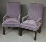 Pair of Contemporary Blue Velvet Strip Arm Chairs; 22" w., 23" d., 42" h. Pair of Contemporary Blue Velvet Strip Arm Chairs; 22" w., 23" d., 42" h.