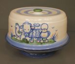 MA Hadley Pedestal Cake Stand and Dome Cover, hand painted blue cows; 9 1/2" h., 14" dia. MA Hadley Pedestal Cake Stand and Dome Cover, hand painted blue cows; 9 1/2" h., 14" dia.