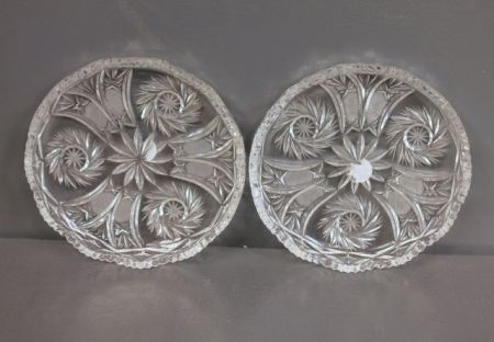 Two Cut Glass Dishes with Sawtooth Edges; 6" dia. Two Cut Glass Dishes with Sawtooth Edges; 6" dia.