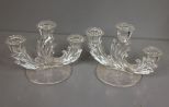 Pair of Vintage Three Arm Glass Candlesticks; 6" h., 8" dia. Pair of Vintage Three Arm Glass Candlesticks; 6" h., 8" dia.