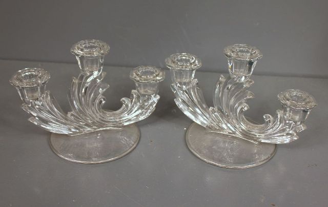 923 Pair of Vintage Three Arm Glass Candlesticks