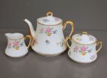 G. Ahrenfeldt Limoge Hand Painted Tea Set, three piece hand painted with roses consisting of teapot 7" h., creamer 3" h., sugar 3" h. G. Ahrenfeldt Limoge Hand Painted Tea Set, three piece hand painted with roses consisting of teapot 7" h., creamer 3" h., sugar 3" h.