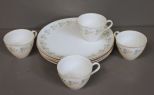 Four Vintage Sandwich Plates (8 1/2" dia. ) with Cups and Set of Six Shell Shaped Dishes with Dips, 5 1/2" x 7" Four Vintage Sandwich Plates (8 1/2" dia. ) with Cups and Set of Six Shell Shaped Dishes with Dips, 5 1/2" x 7"