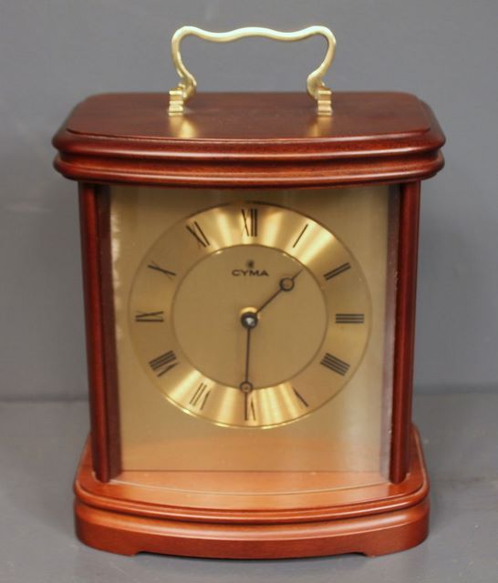 Cyma Mantel or Carriage Clock; 9 1/2" h. Cyma Mantel or Carriage Clock; 9 1/2" h.