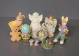 Group of Small Resin Figurines, including; angel bell 5" h., rabbit 4" h., egg 3" h., rabbit 5" h., house 2" h. Group of Small Resin Figurines, including; angel bell 5" h., rabbit 4" h., egg 3" h., rabbit 5" h., house 2" h.