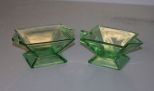 Heissey Glass Green Sugar and Creamer; 3 1/2" w., 2 1/2" h. Heissey Glass Green Sugar and Creamer; 3 1/2" w., 2 1/2" h.