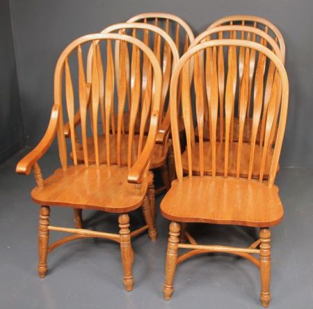 Set of Six Oak Arrow Back Chairs; 46" h., 23 1/2" w. Set of Six Oak Arrow Back Chairs; 46" h., 23 1/2" w.