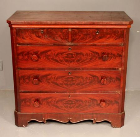 Five Drawer Empire Mahogany Chest; 42" w., 21" d., 40" h. This item sold to BuyNow Customer. Five Drawer Empire Mahogany Chest; 42" w., 21" d., 40" h. This item sold to BuyNow Customer.