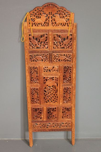 Shisham Wood Panel from Screen, India, with lion, cranes and peacock, 1960's vintage; 40" h., 13" w. Shisham Wood Panel from Screen, India, with lion, cranes and peacock, 1960's vintage; 40" h., 13" w.