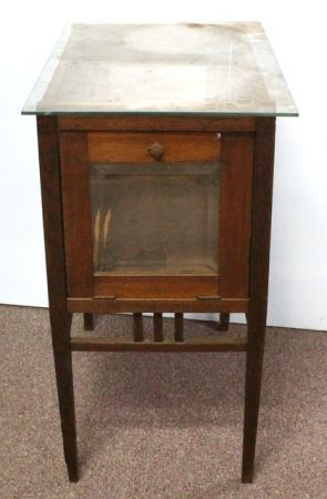 304 Small Beveled Glass Oak Display Cabinet with Glass Top