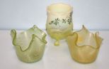 1002 Two Murano Glass Ruffled Edge Bowls & Fenton Glass Jar