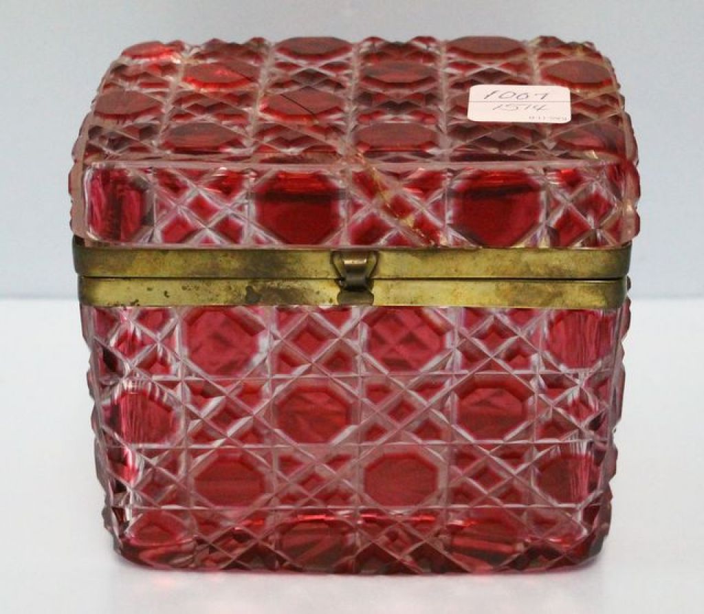 Cracked across the top; 5 1/2" w., 3" d., 5" h. Cracked across the top; 5 1/2" w., 3" d., 5" h.