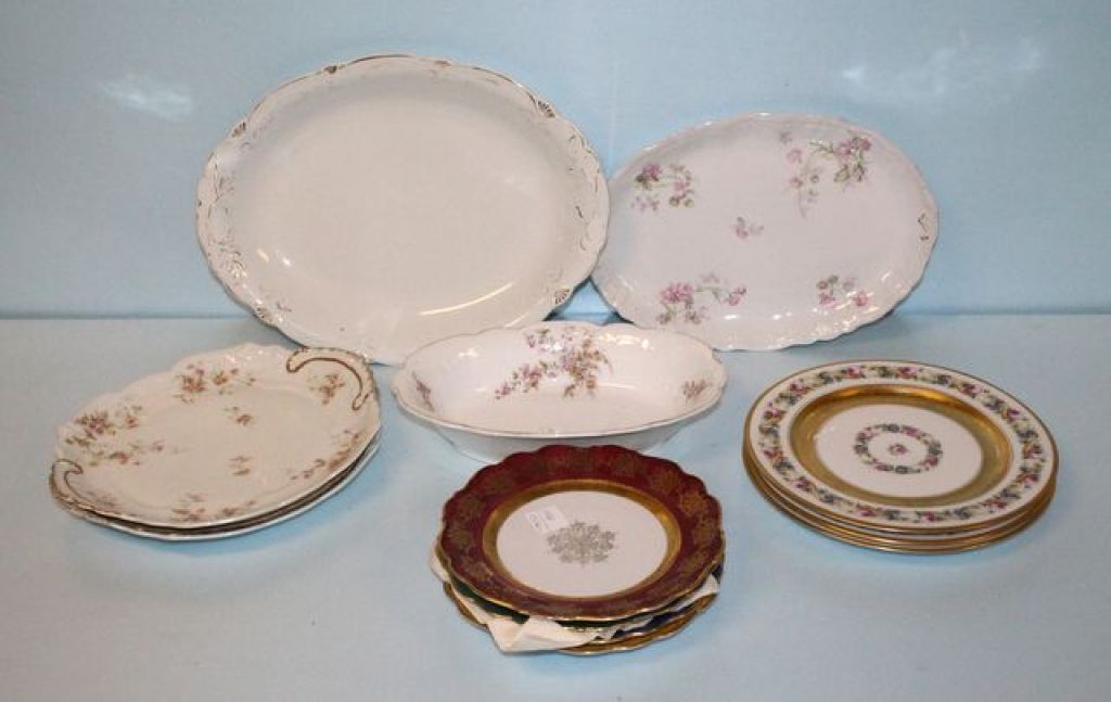 Four P.M.B. Dresden plates, various platters & vegetable bowl Four P.M.B. Dresden plates, various platters & vegetable bowl