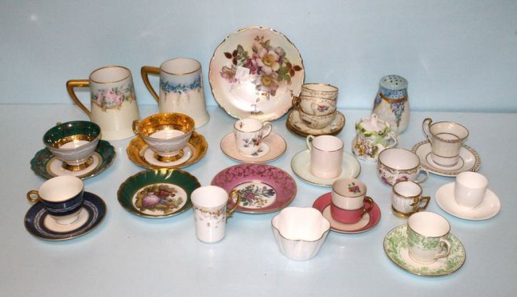 1023 Group of Cups, Saucers, Shaker, Mugs & Plate