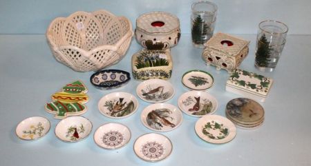 1052 Four Christmas Glasses, Coasters, Boxes & Large Latticework Bowl