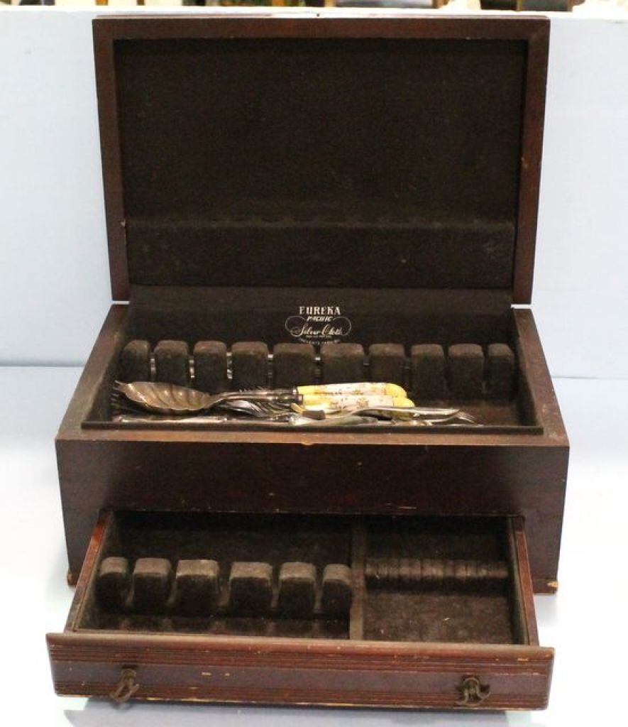 360 Twenty Various Pieces of Flatware in a Box & A.E. Lewis Company England Sheffield Salad Set with Porcelain Handles