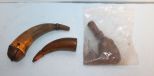 993 Two Antler Horn Powder Flasks & One Bag Powder Flask