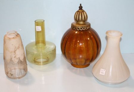 937 Milk Glass Shade, Two Amber Shades & Clear Shade