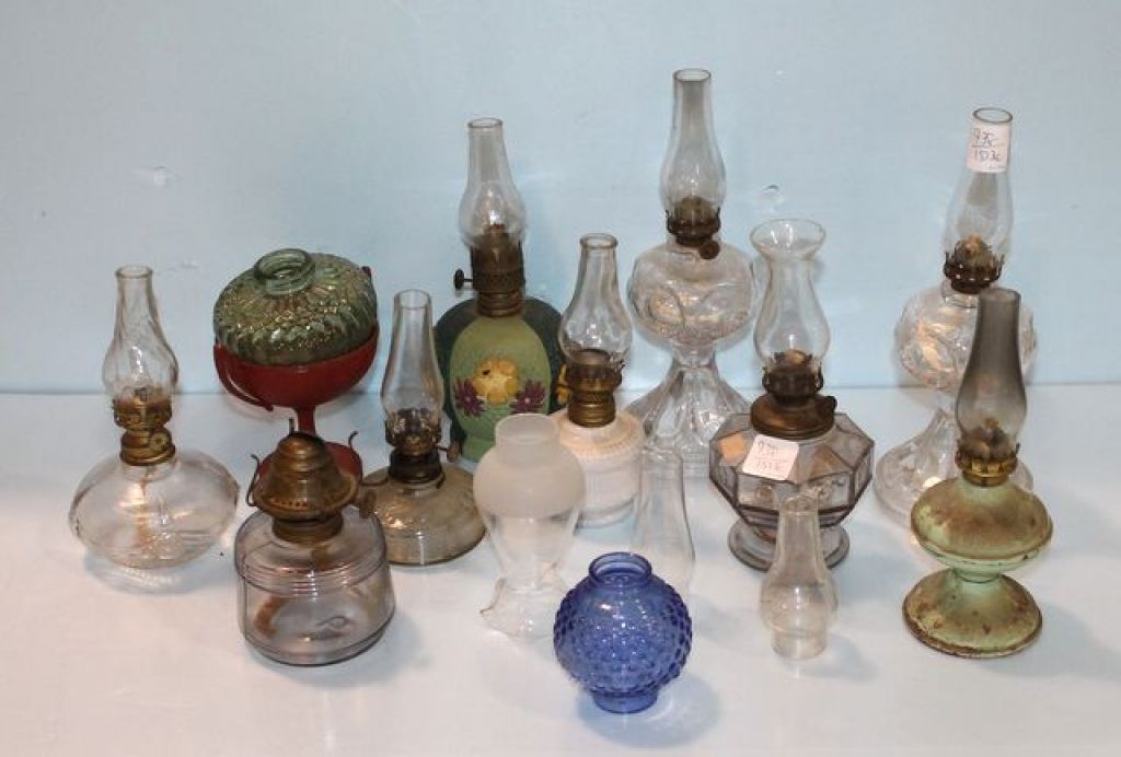938 Assortment of Miniature Oil Lamps & Extra Chimneys
