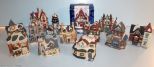 1148 Twelve Resin Christmas Village Houses & Palm Tree in Pot