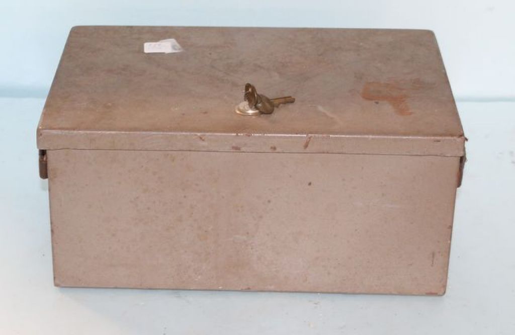 Has key; 14"x 9 1/2"x 6 1/2" Has key; 14"x 9 1/2"x 6 1/2"