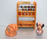 1208 Minnie Mouse Top, Battery Operated Pig & Small Number/Letter Rack