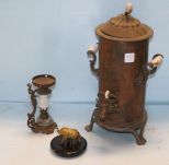 1289 Rusted Antique Metal Coffee Pot, Small Lamp & Small Brass Elephant