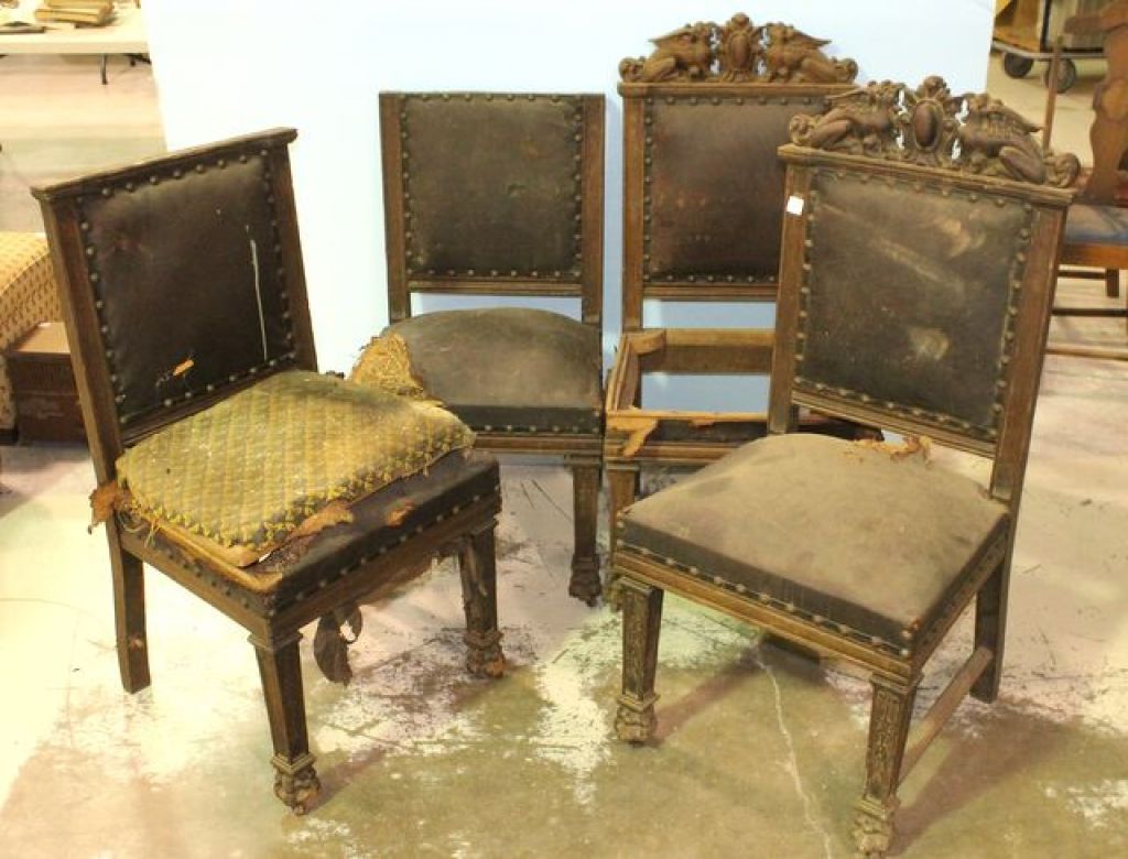 1332 Four As Is Oak Carved Turn of the Century Side Chairs