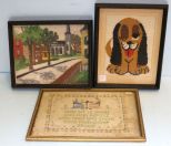 Sampler 15" w., 11" h.; Needlework 10" w., 12" h. Sampler 15" w., 11" h.; Needlework 10" w., 12" h.