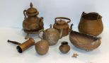1408 Two Brass Kettles, Handled Pot, Jar & Oval Bowl