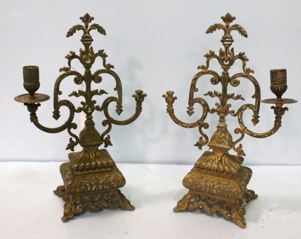Missing two bobeches; 10" w., 15" h. Missing two bobeches; 10" w., 15" h.