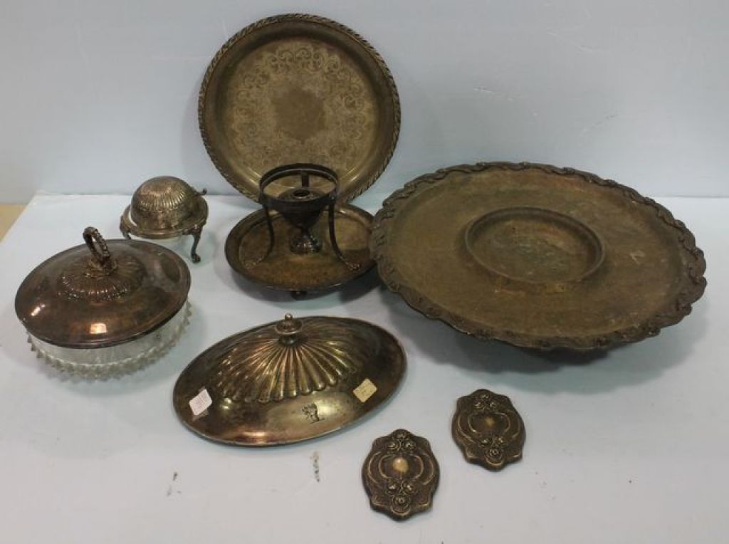 1537 Large Silverplate Trays, Covered Dish & Lids