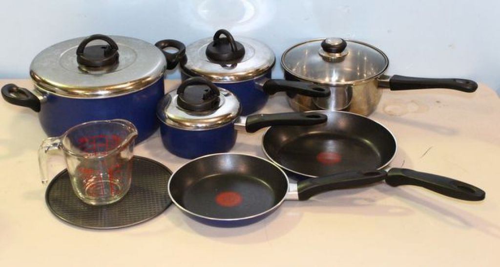1590 Five T-Fal Pot and Pans & Mixing Cup