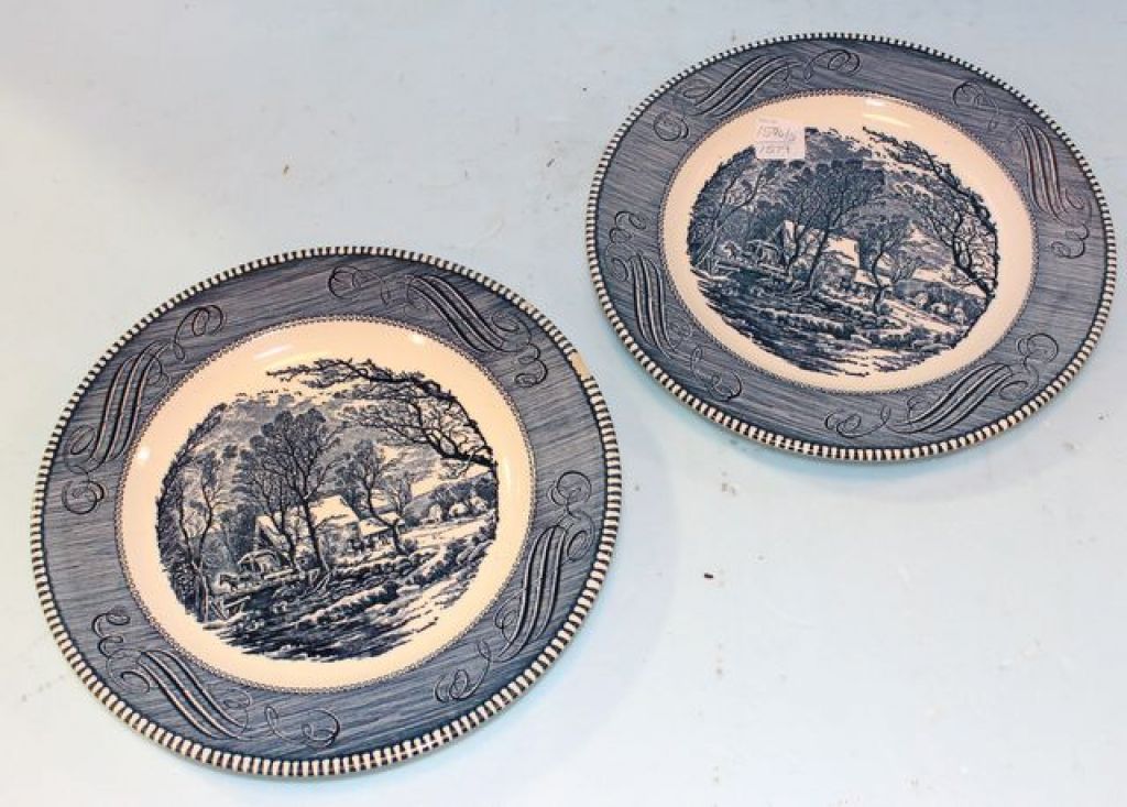1596 Two Currier and Ives The Old Grist Mill Plates
