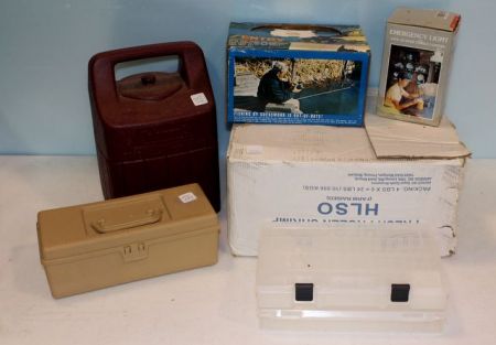 Fishing line, equipment, tackle box & Coleman lantern case Fishing line, equipment, tackle box & Coleman lantern case