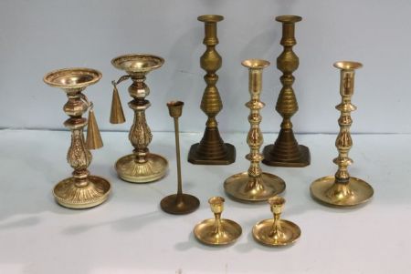 720 Seven Brass Candlesticks & Two Metal Candlesticks